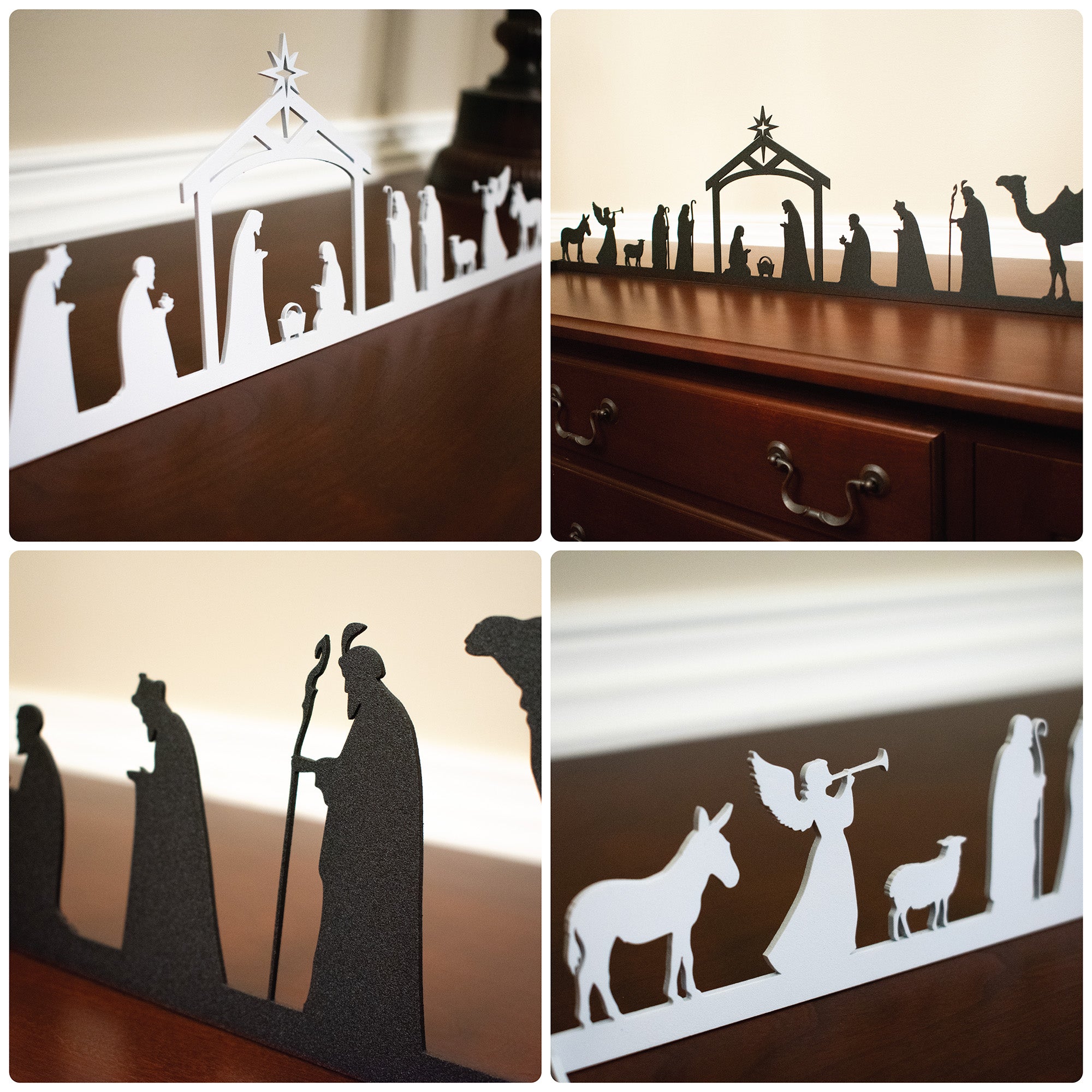 This Metal Nativity Scene will last you many Christmas' to come. Made from sturdy 14G steel and powder coated for long term durability. The Nativity Scene comes with metal stands to hold it upright.