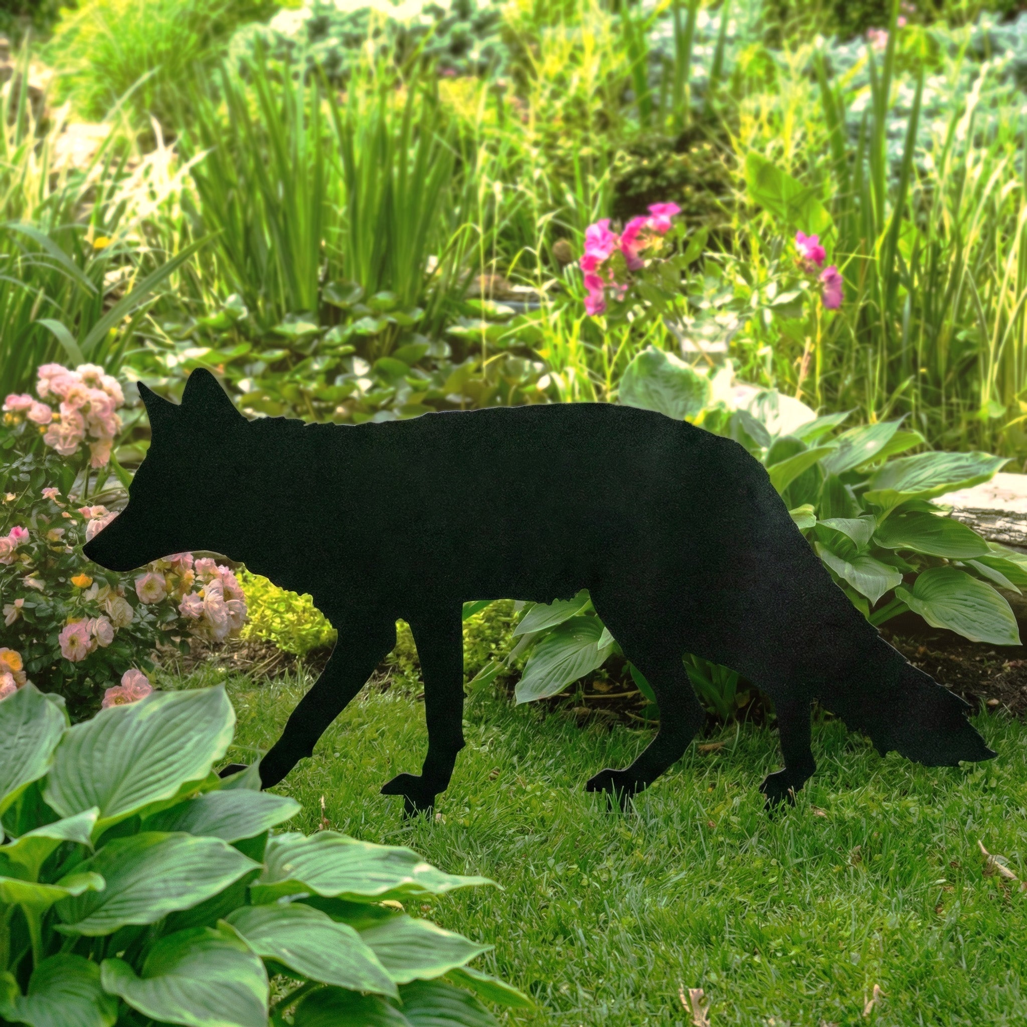 Laser cut from durable steel, and powder coated to resist rust and UV rays. This fox garden stake will make a lasting impression wherever it goes!