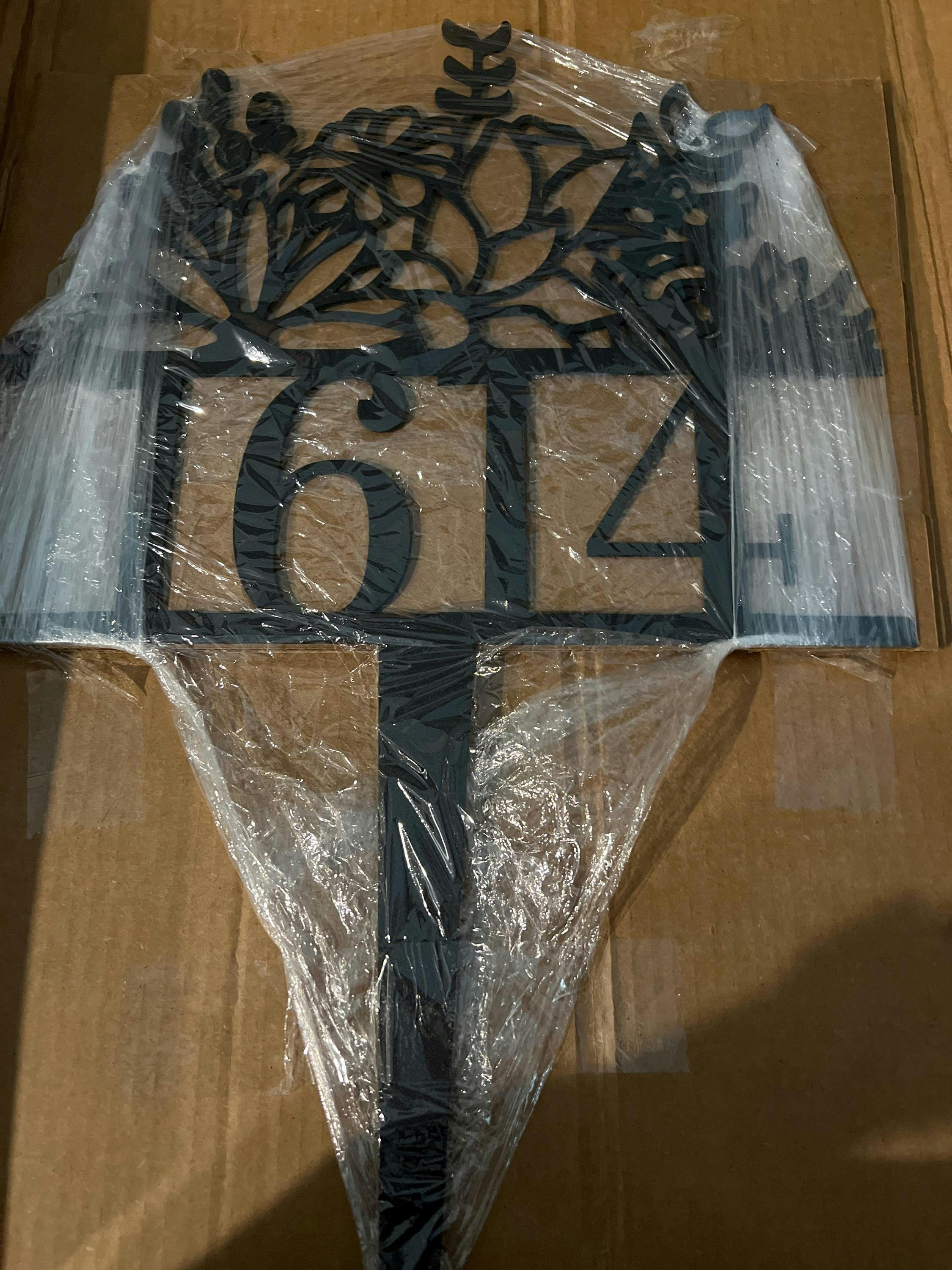 Laser cut from durable steel, and powder coated to resist rust and UV rays. This address sign will make a lasting impression wherever it goes!